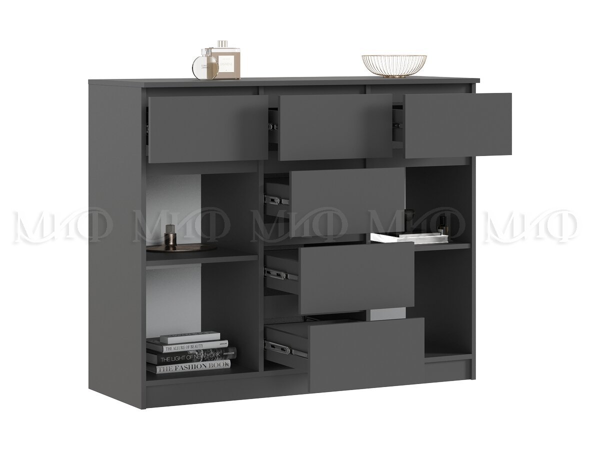 - Комод 1200 (2 двери 6 ящиков) Челси Графит