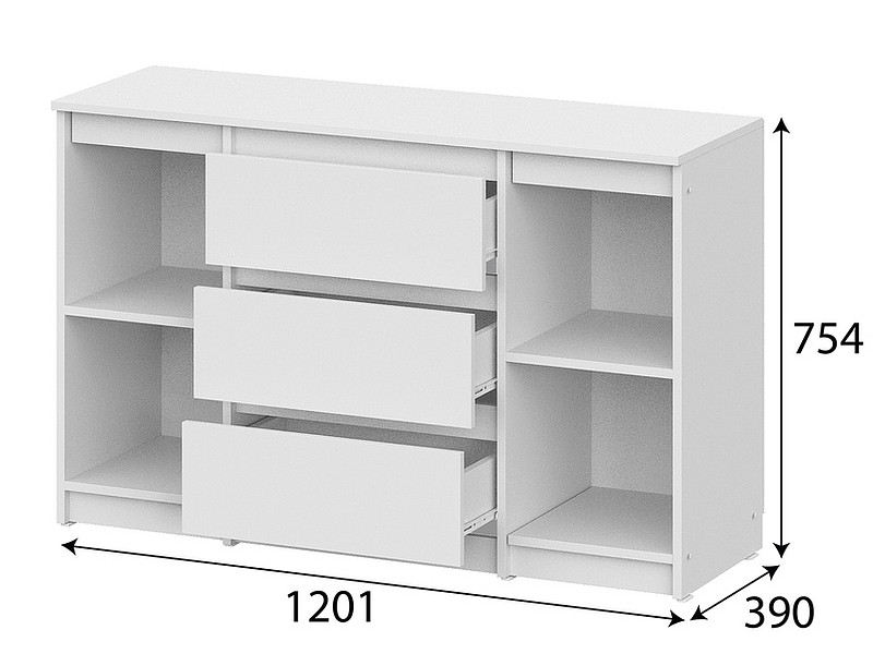 - Комод 3 ящика двухстворчатый Денвер Серия 2 Белый