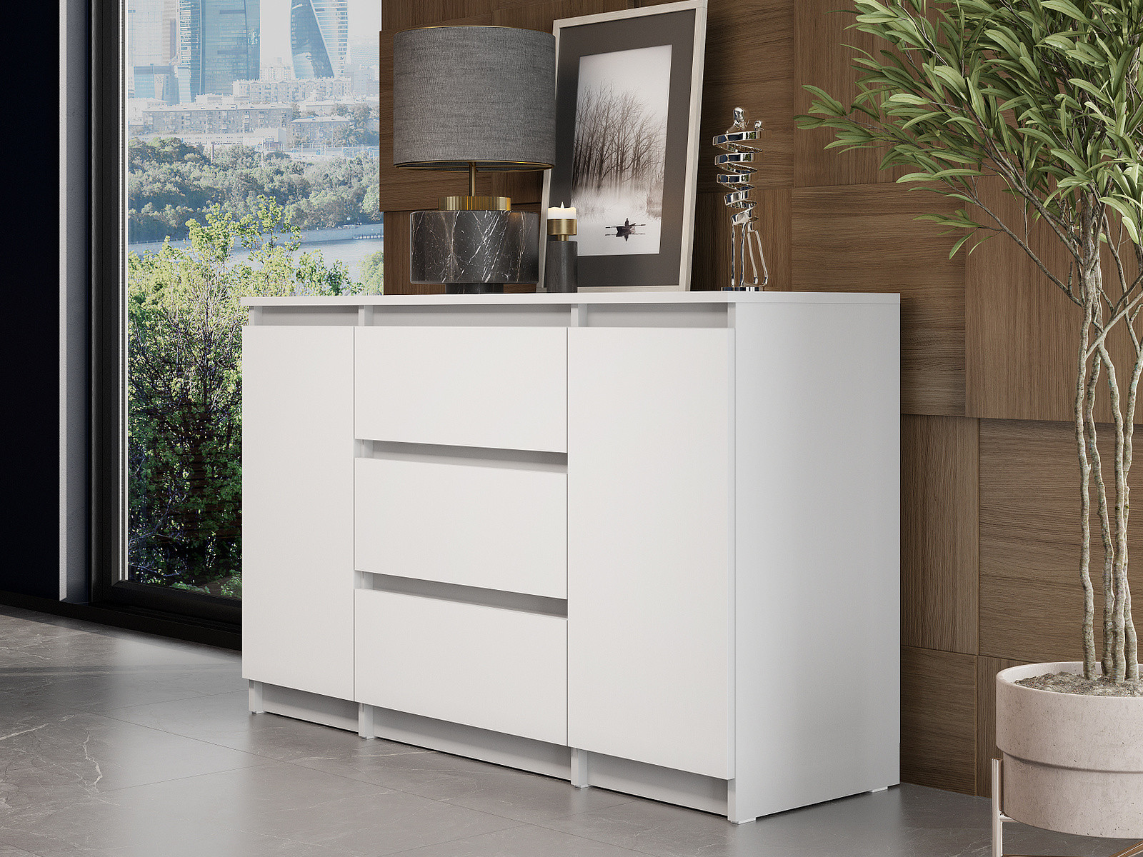 Комод 3 ящика двухстворчатый Денвер Серия 2 Белый