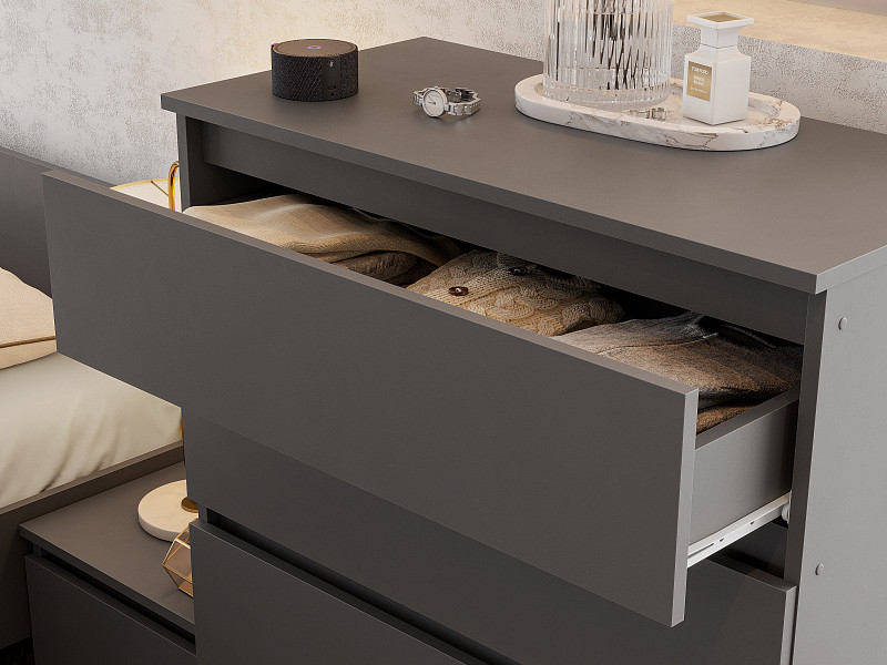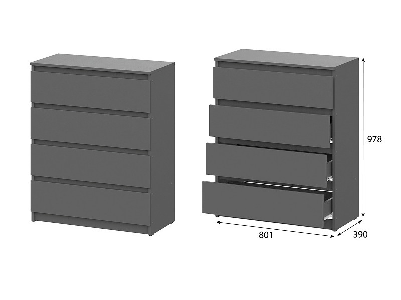 - Комод 4 ящика Денвер Графит серый