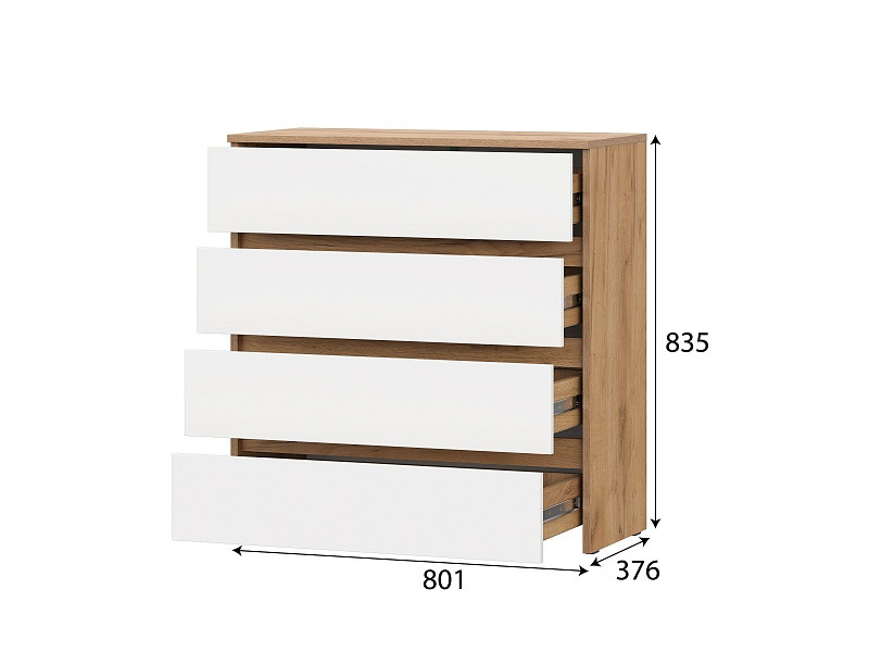 - Комод 4 ящика Некст 1 Дуб Золотой/Белый