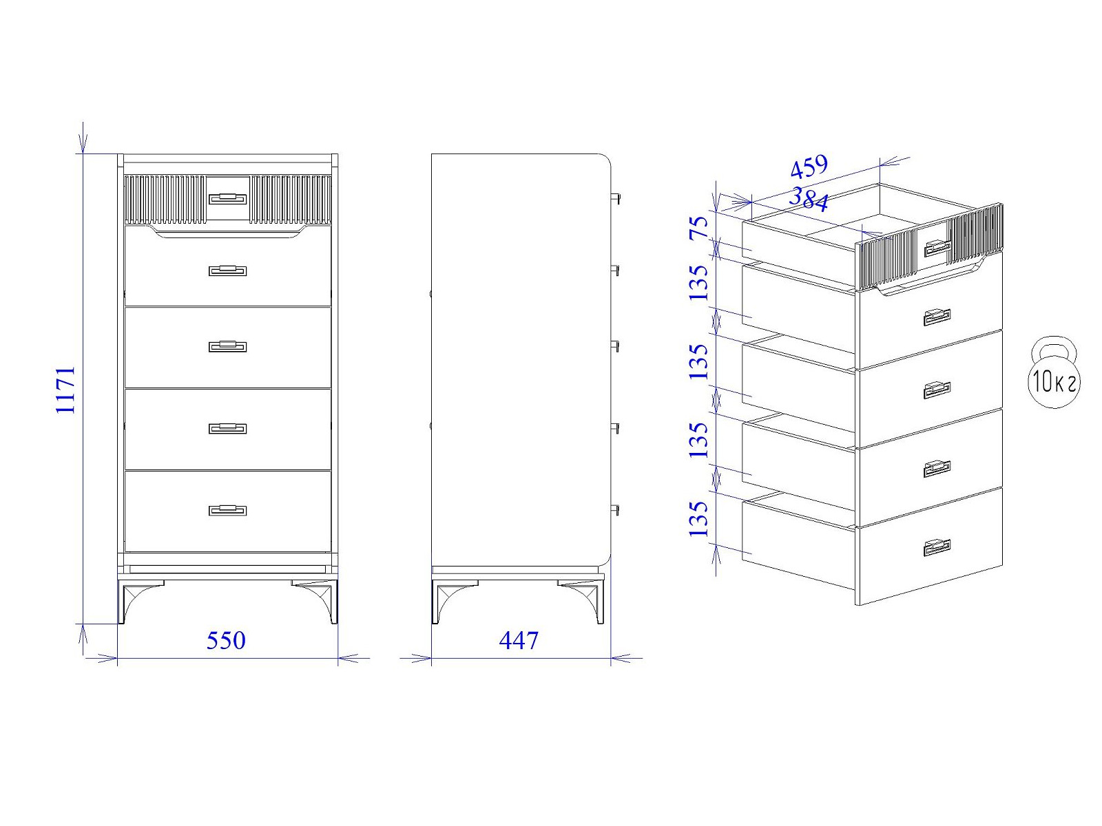 Макс.нагрузка на ящик (кг): 10