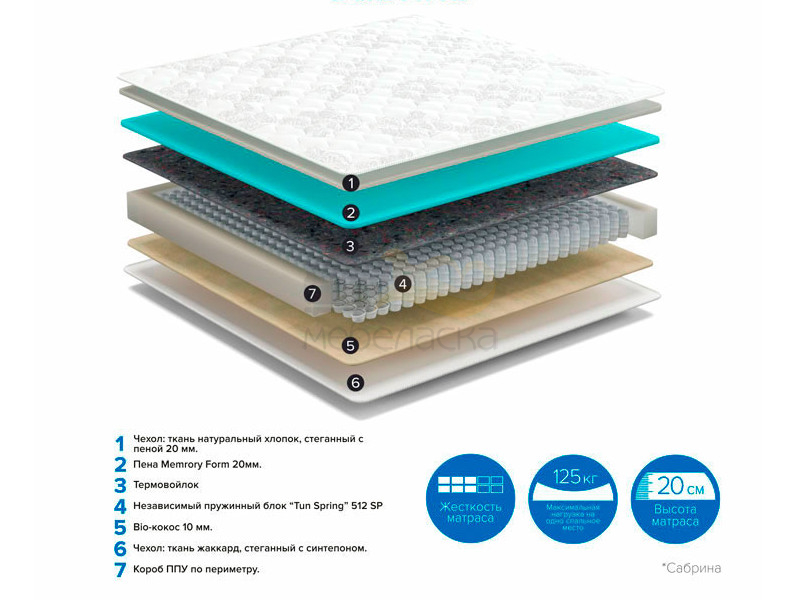Чехол: Натуральный хлопок, стеганный с пеной 20 мм