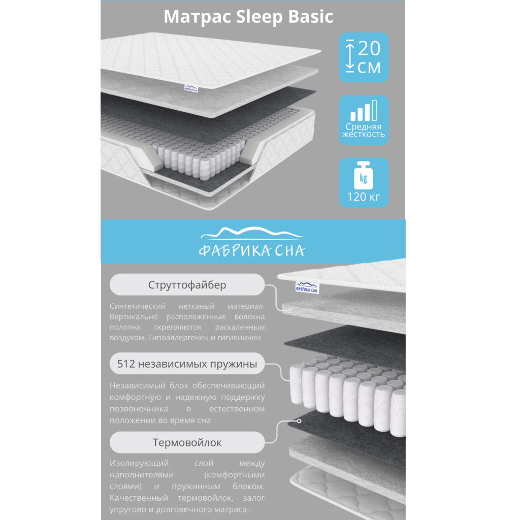 - Матрас Sleep Basic шириной 1600 мм