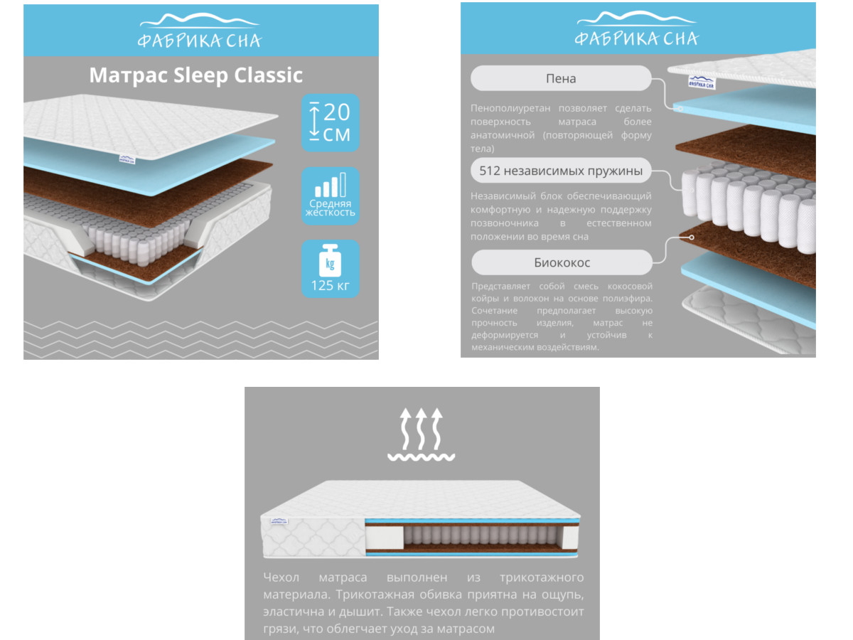 - Матрас Sleep Classic шириной 900 мм
