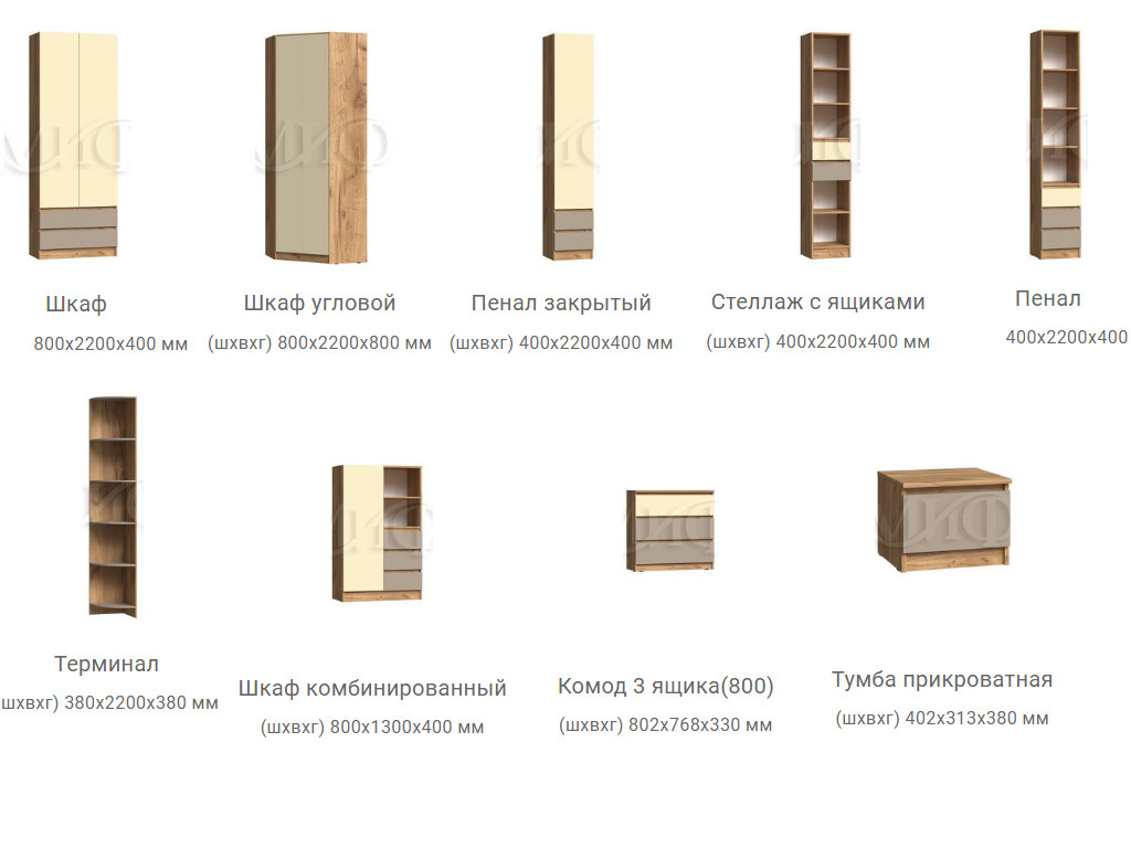 Цвет фасад/корпус: Слоновая кость/Глиняный серый/Дуб крафт