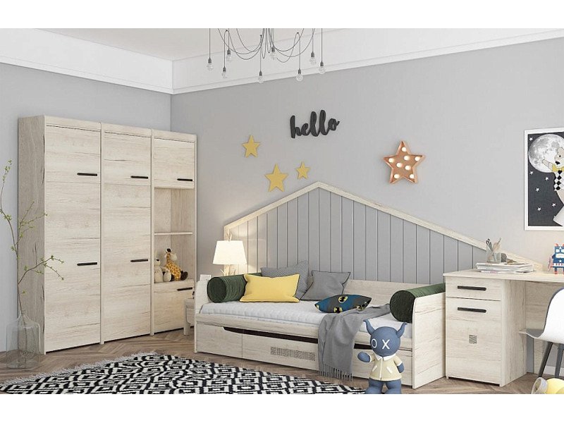 Цена за комплект: Тумбочка прикроватная, Кровать с ящиками, Стол письменный,. М-2 Шкаф 1-но дверный (2 шт),М-3 Пенал узкий