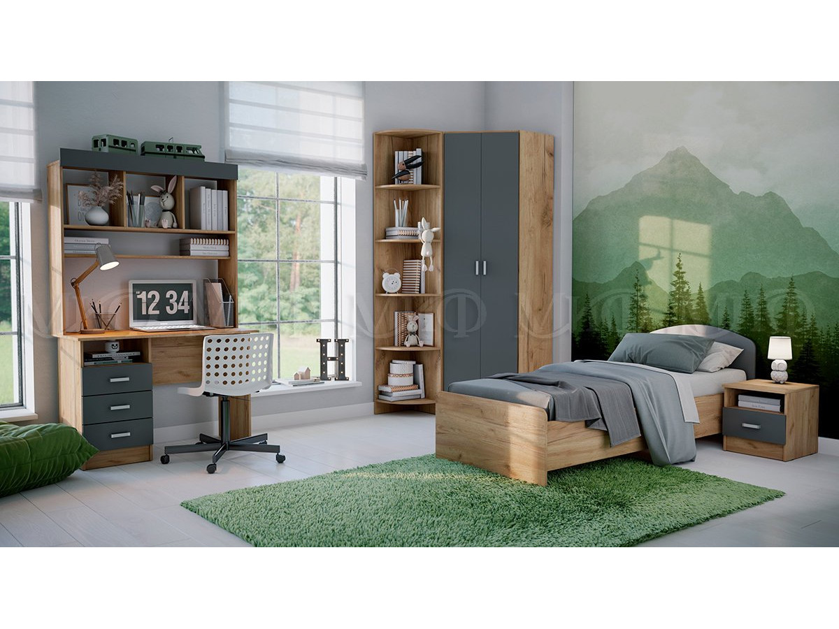 Цена за комплект: Стол письменный, Надстройка, Кровать, Тумба прикроватная, Шкаф угловой, Терминал