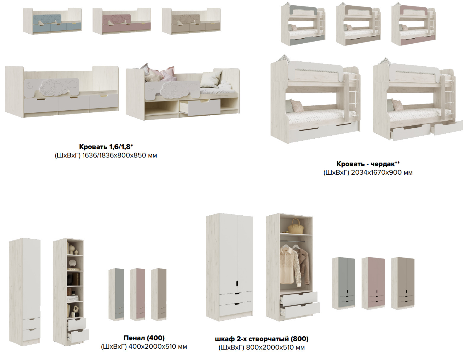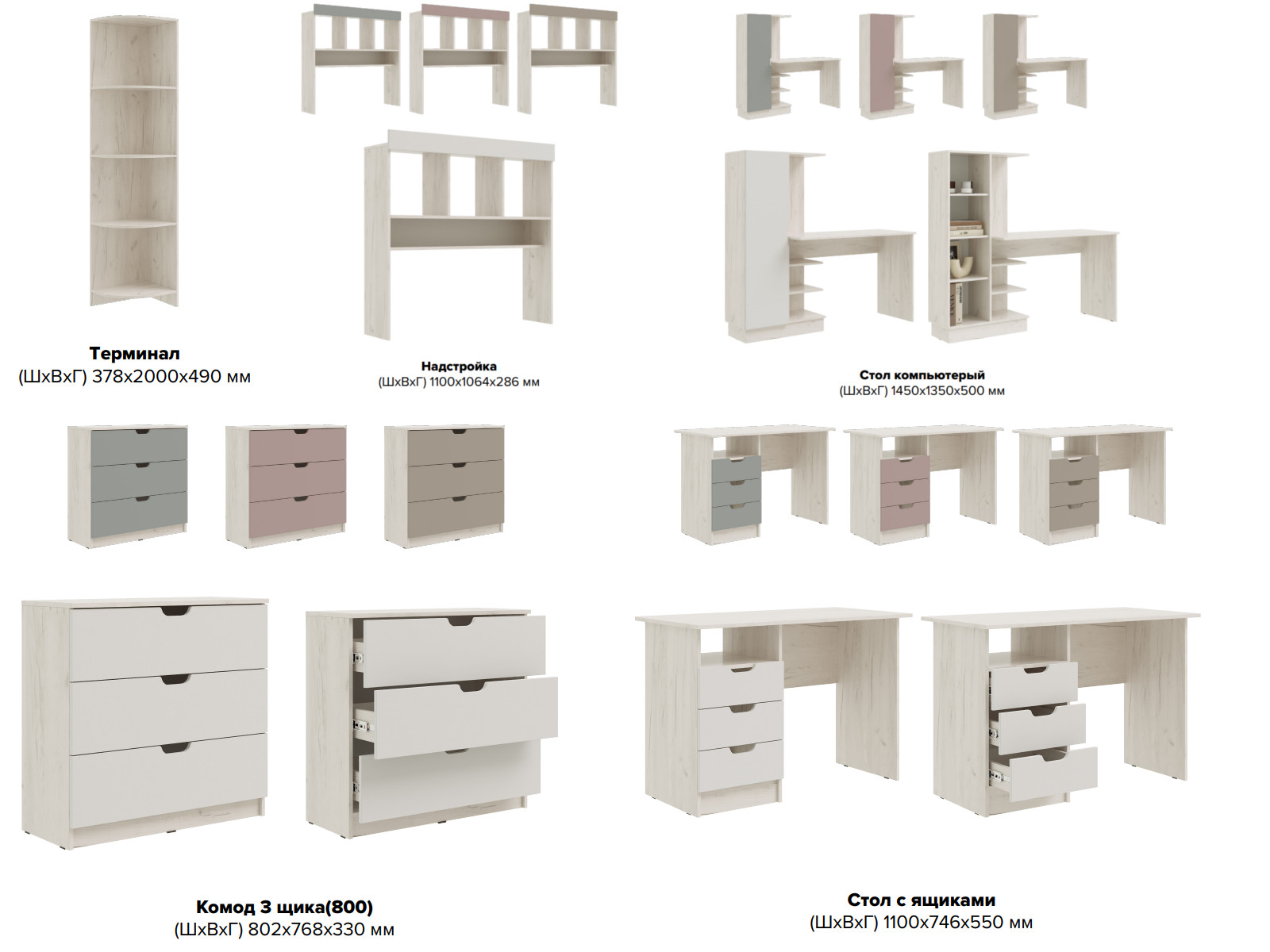 Цена за комплект: Кровать 1.6, Стол с ящиками, Надстройка, Терминал, Пенал