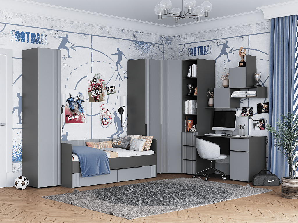Цена за комплект: Стол письменный ПРАВЫЙ, Полка настенная №2, Шкаф 3-ств с зеркалом, Кровать 0,9, Настил 90