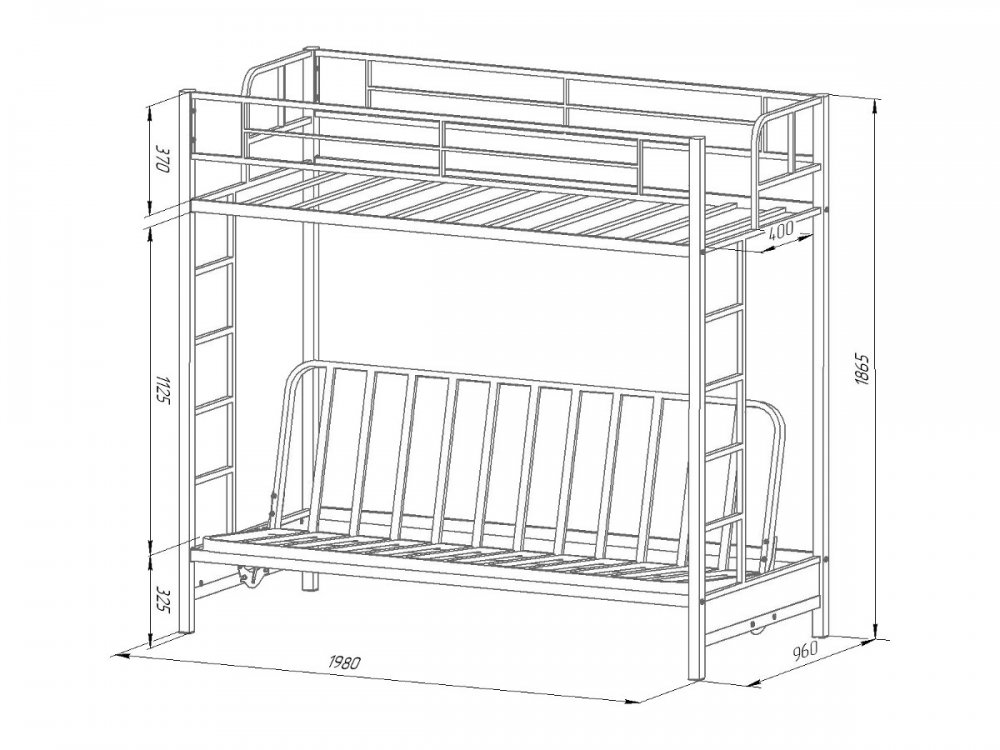 Двухъярусная кровать с диваном Мадлен ЯЯ Серый пифагор