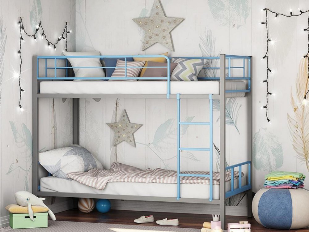 Двухъярусная кровать Севилья-2.01 комбо Серый/Голубой