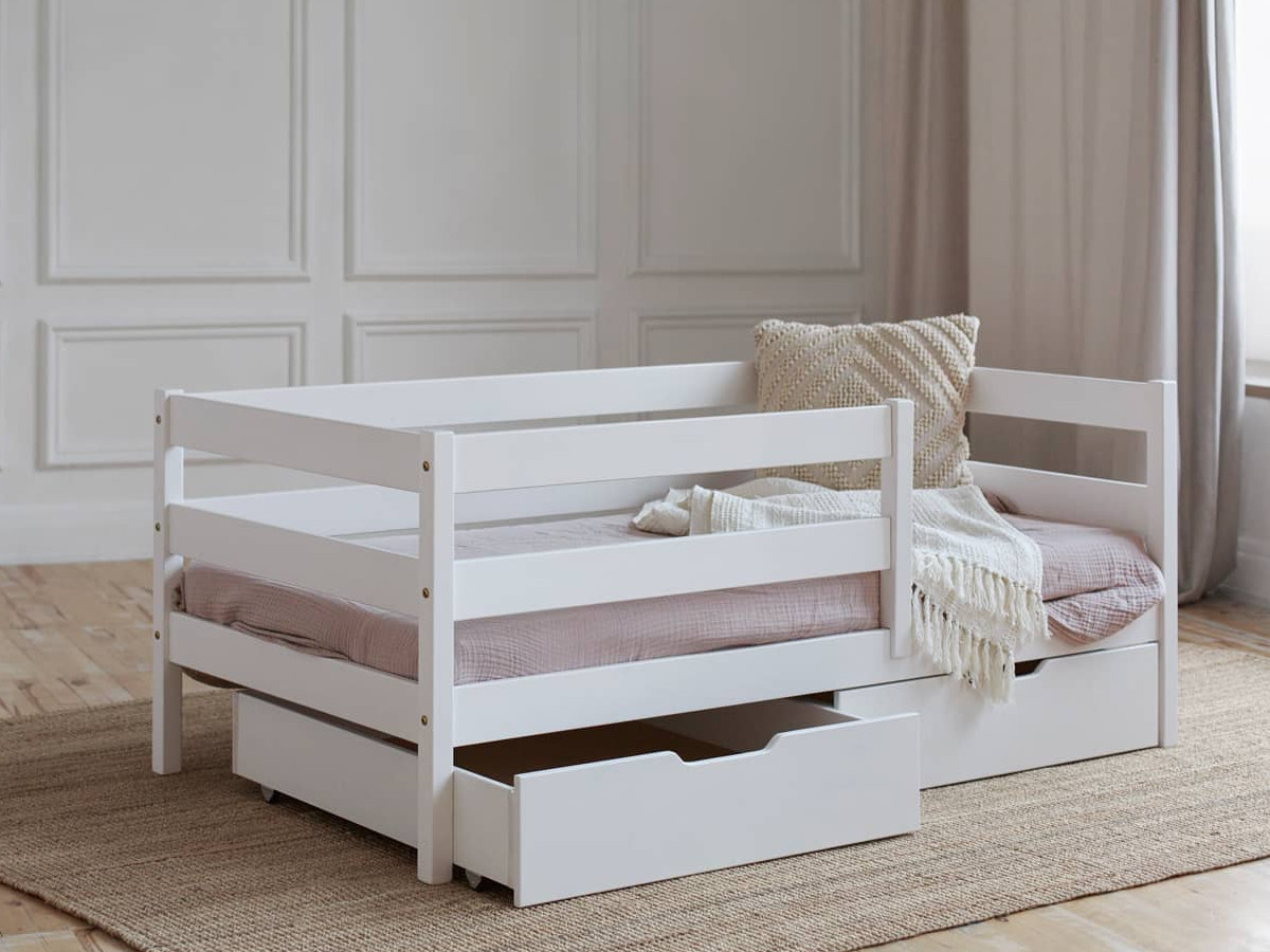 - Кровать-софа детская с бортиками белый 80х160 см с ящиками