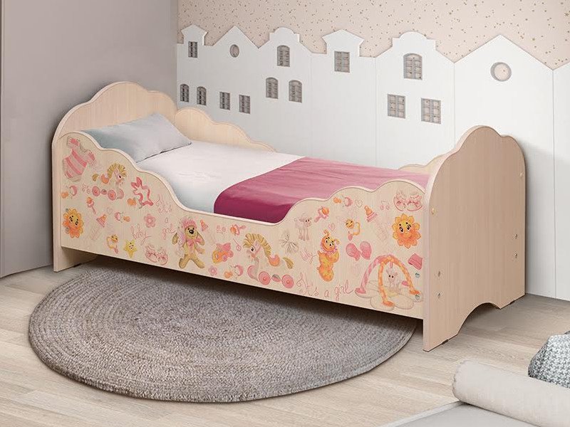 Кровать детская с бортом Малышка №4 дуб млечный