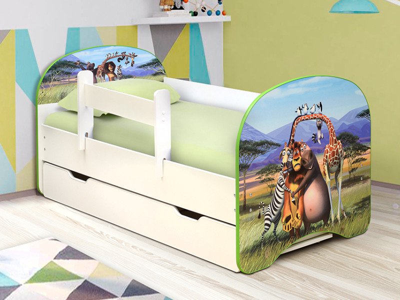 - Кровать детская с фотопечатью с 1 ящиком Африка