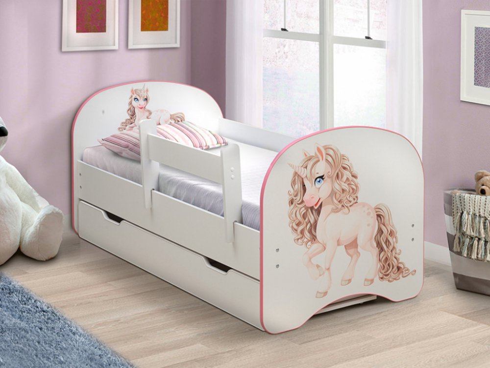 - Кровать детская с фотопечатью с 1 ящиком Единорог