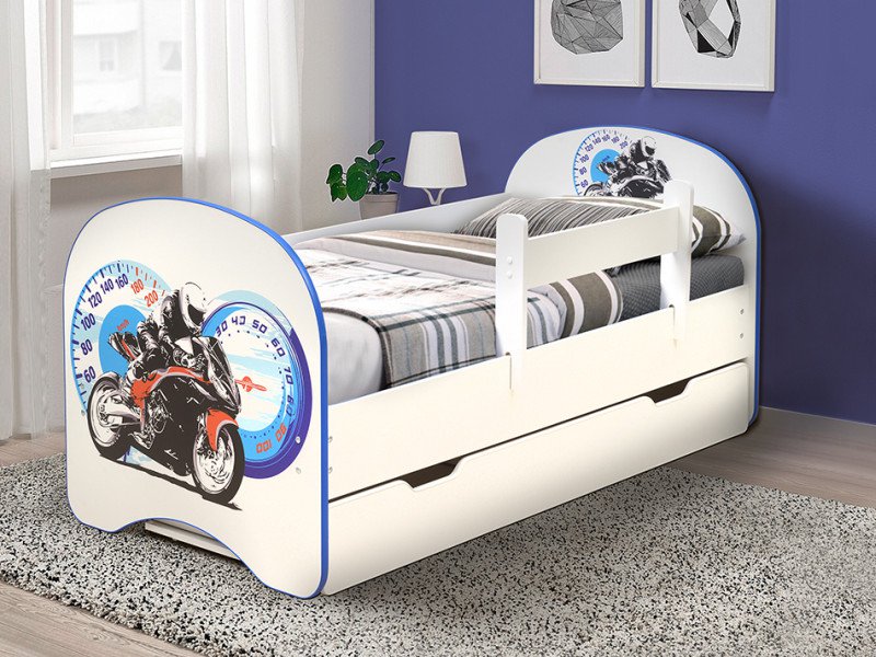 - Кровать детская с фотопечатью с 1 ящиком Мотоцикл