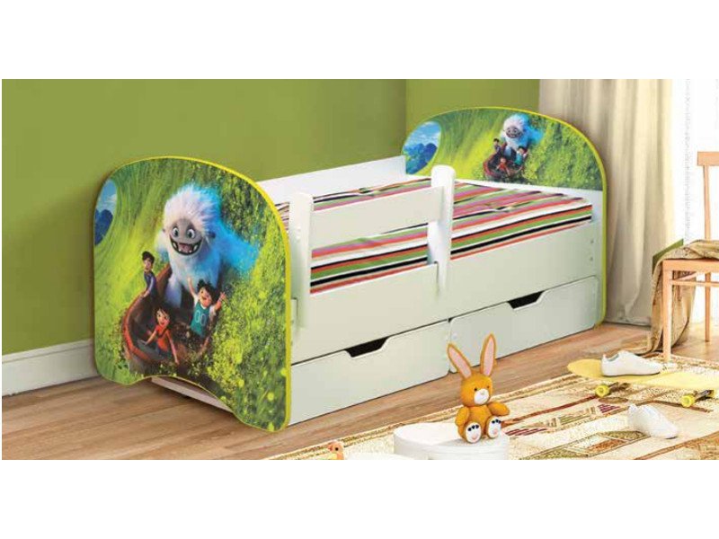 - Кровать детская с фотопечатью с 2-мя ящиками Снежный человек