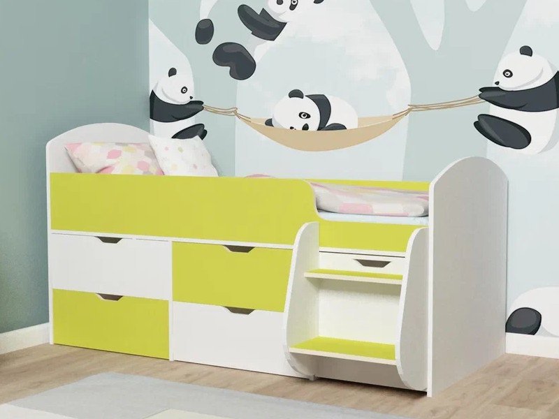 - Кровать Малыш-7 белое дерево-лайм