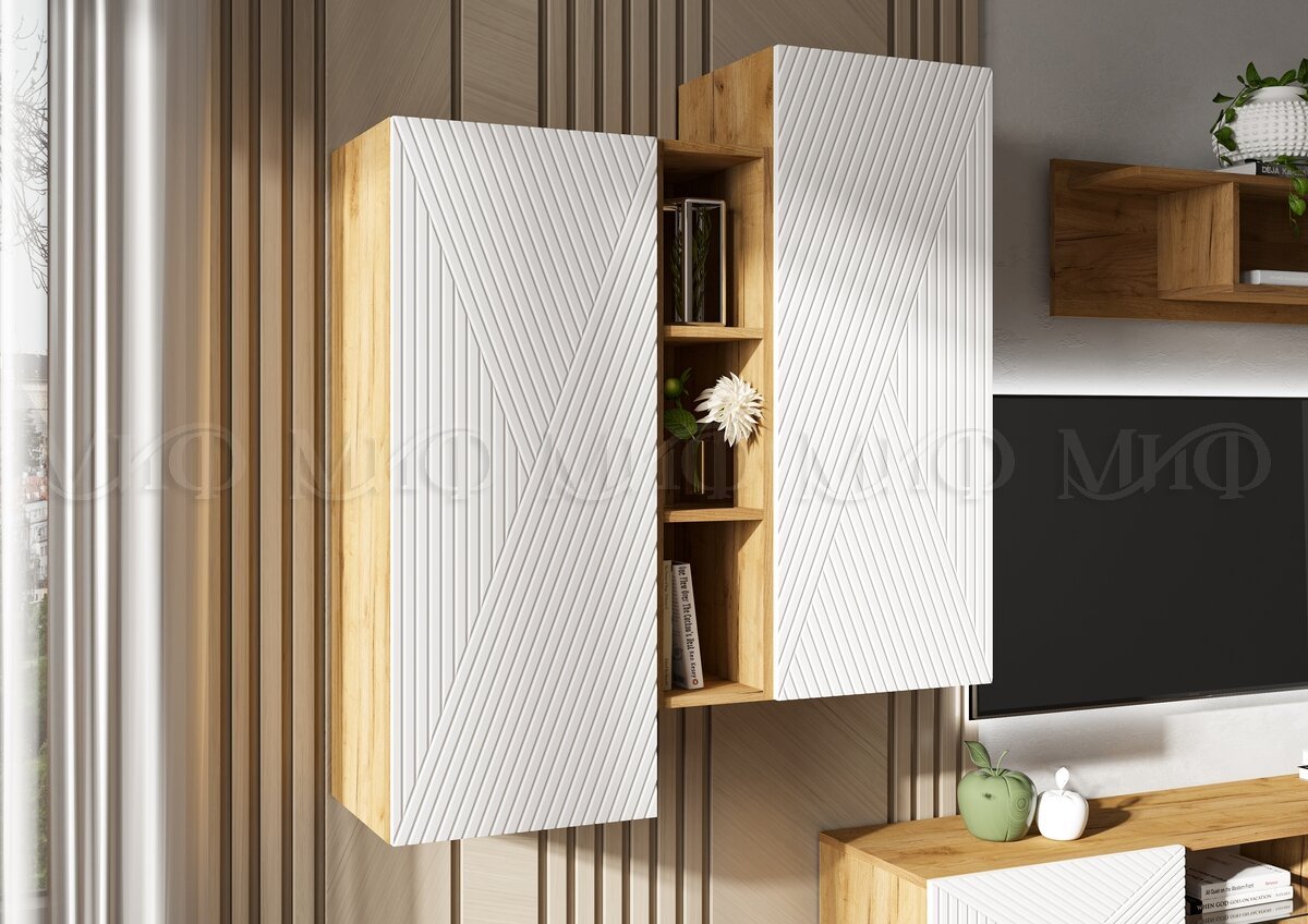 - Гостиная навесная Флэш Браш Вайт, Дуб Крафт