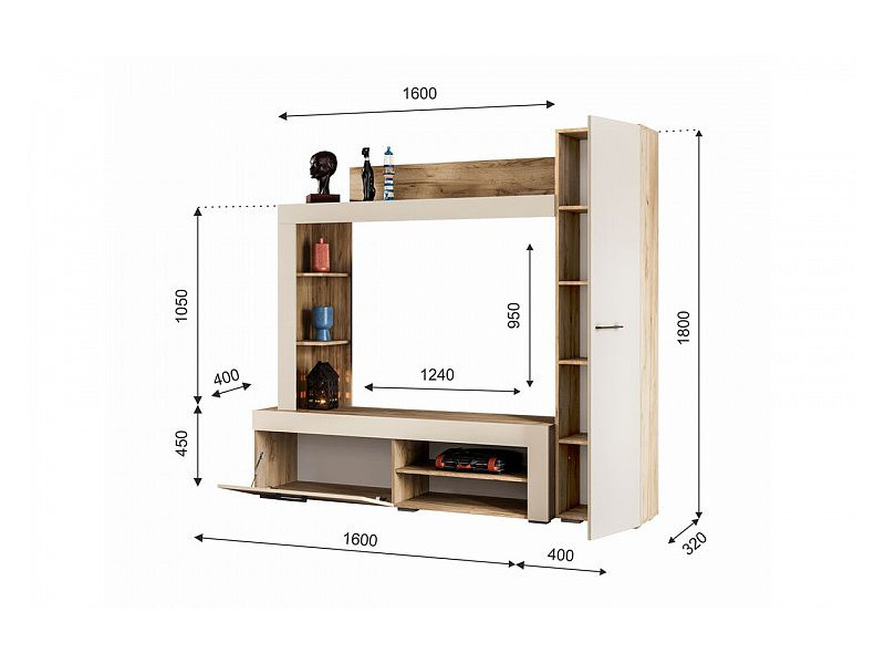 Цвет: ЛДСП Дуб крафт серый/МДФ Софт айвори