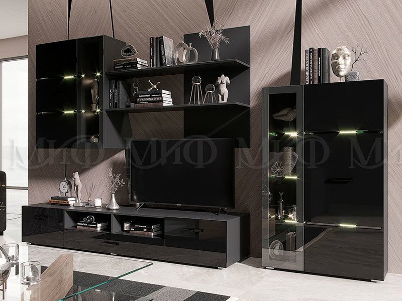 Цена указана за комплектацию на фото: Шкаф с полками, Тумба ТВ, Шкаф навесной с полкой