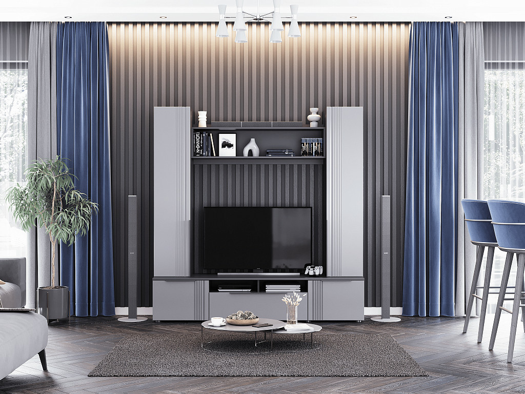 Цена за комплект: Тумба ТВ 2000, Пенал (надстройка) (2шт), Полка настенная №1, Пенал с полками (2шт)