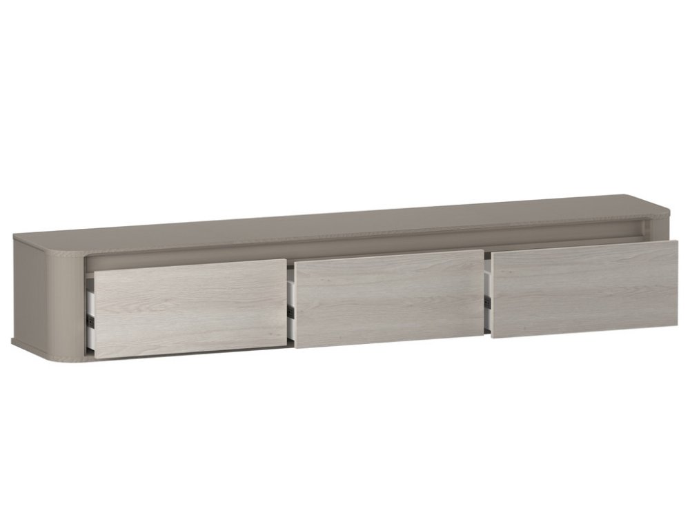 Наполнение тумбы - 3 выдвижных ящика с доводчиками. Шариковые направляющие надежно удерживают ящики при открывании.