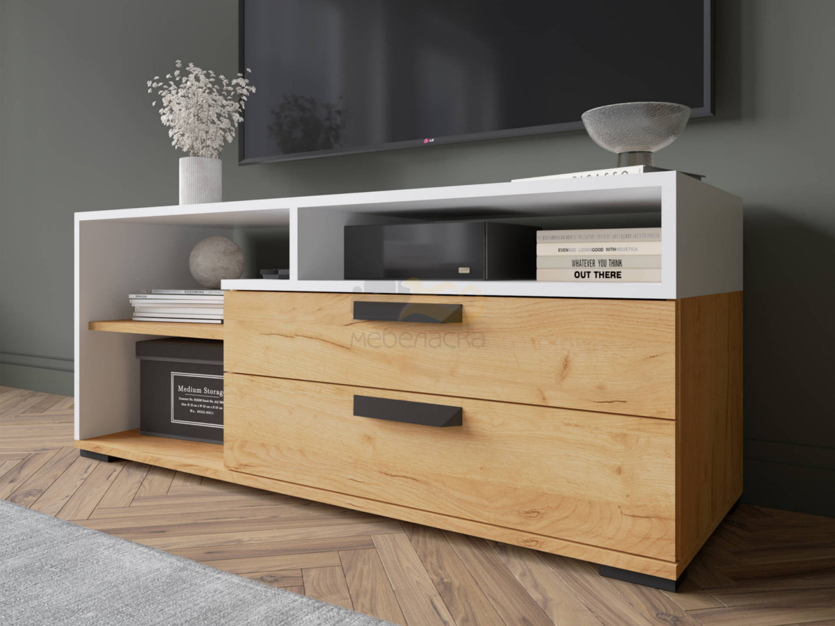 - Тумба под ТВ ТВМ-7 белый/дуб крафт золотой