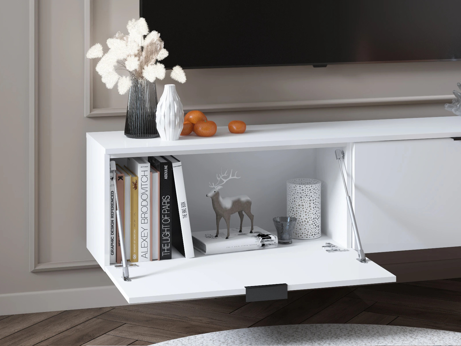 Тумба ТВ Осло М23 ручка торцевая Белый/Белый