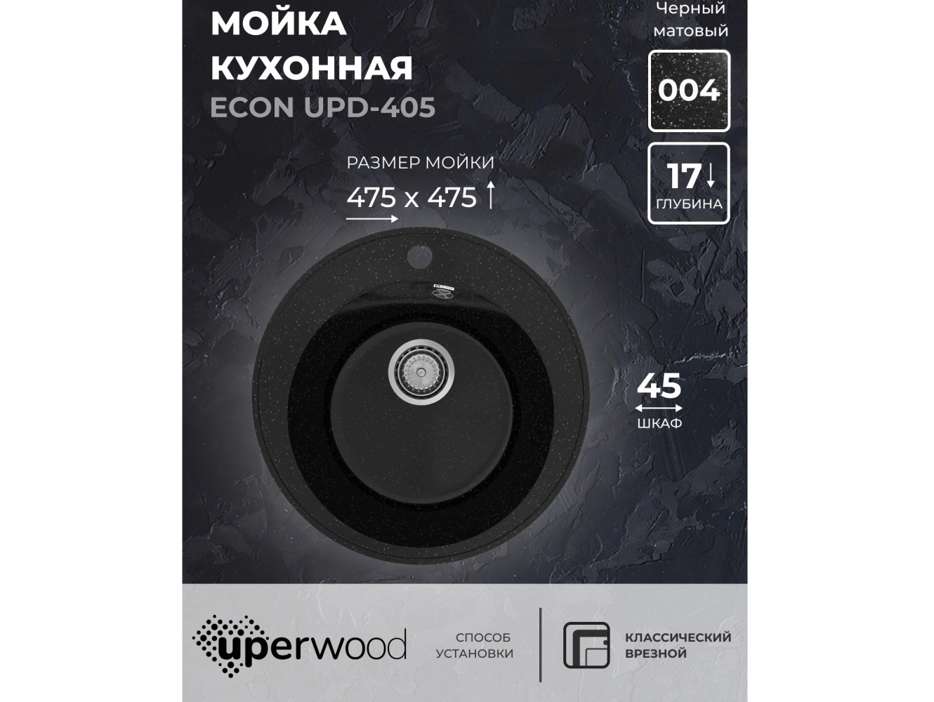- Кухонная мойка Uperwood ECON UPD-405-004 черная матовая
