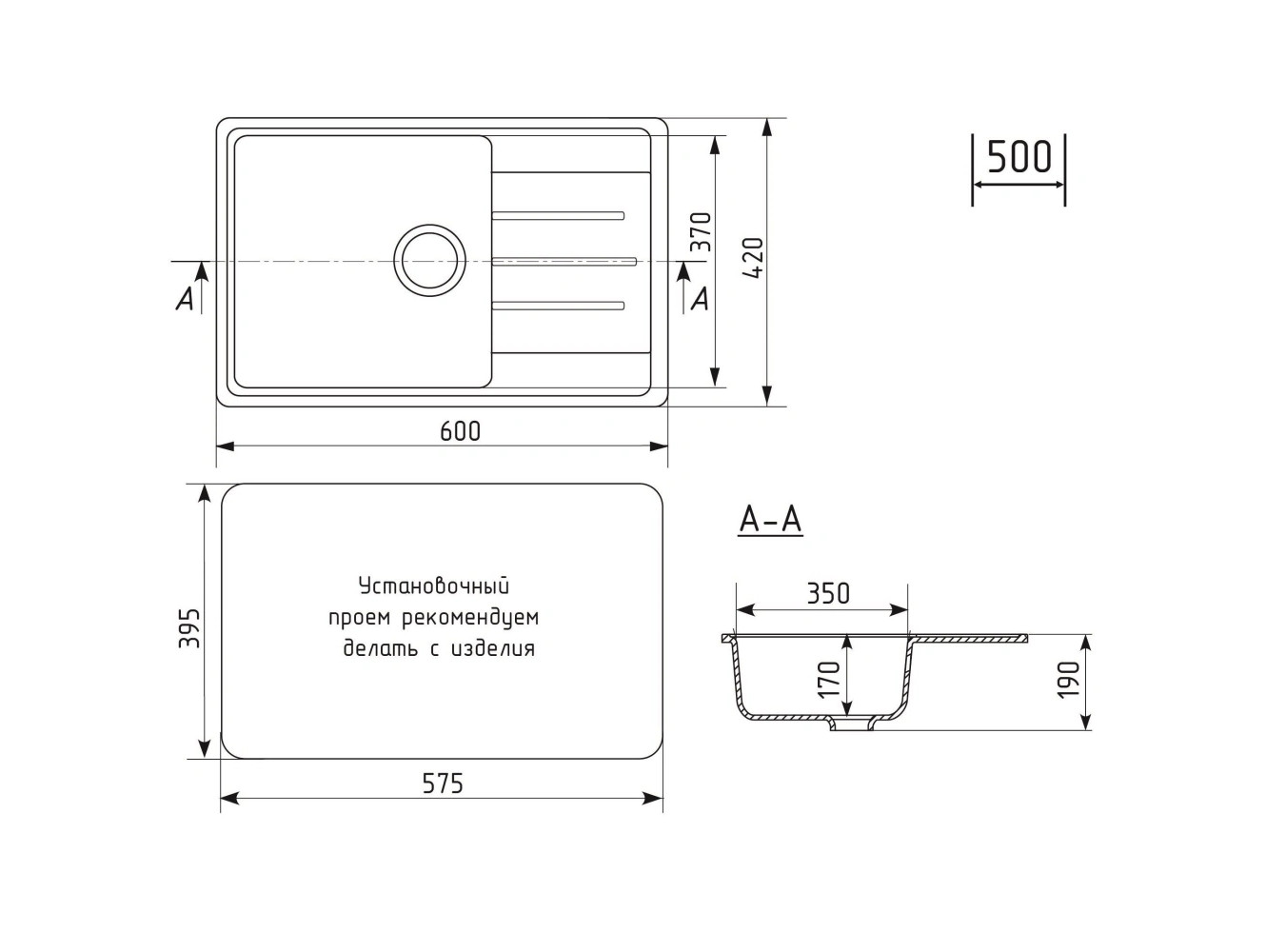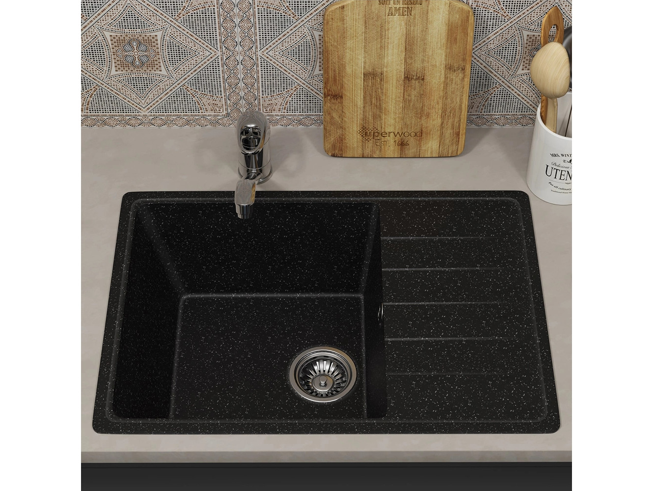 - Кухонная мойка Uperwood ECON UPD-506-004 черная матовая