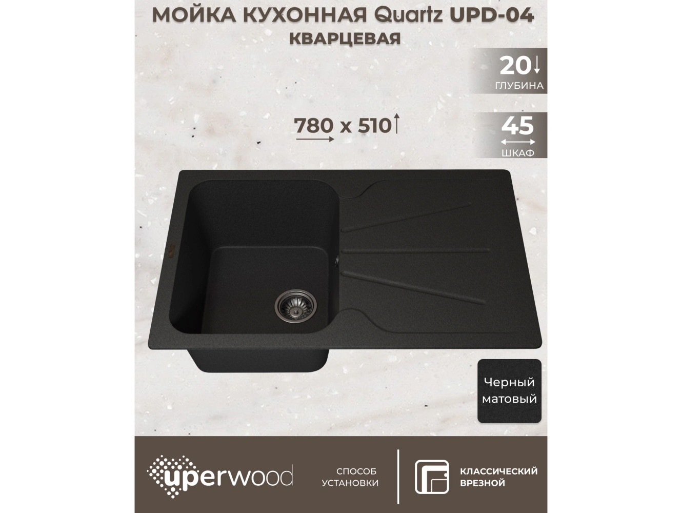 Кухонная мойка Uperwood Quartz UPD-04-04 черная матовая