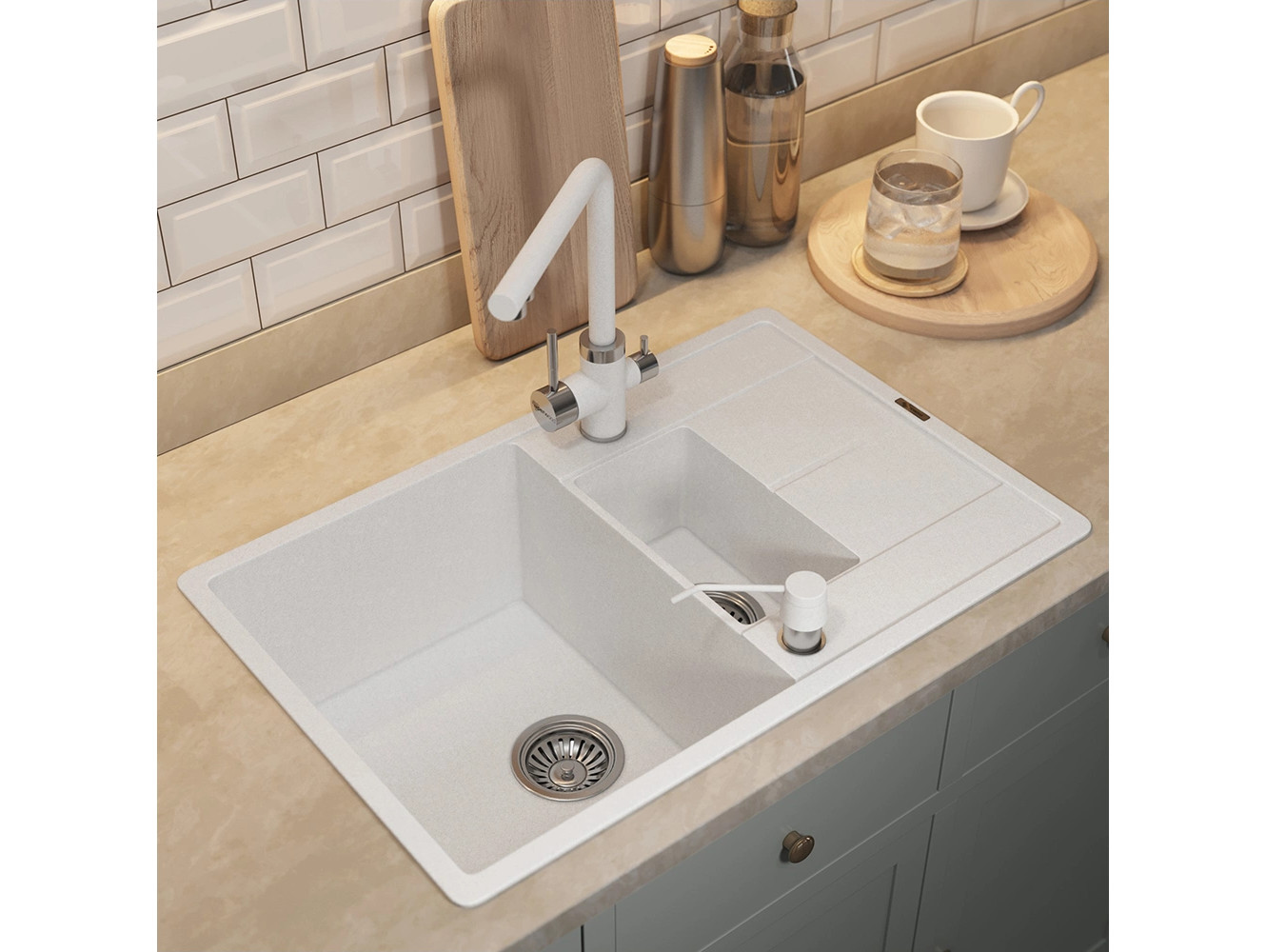 - Кухонная мойка Uperwood Quartz UPD-05-01 белая матовая