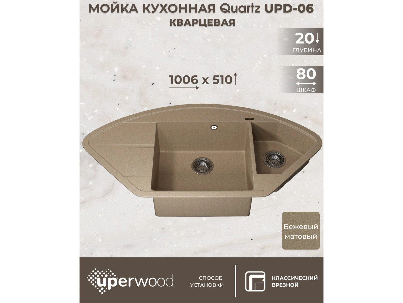 - Кухонная мойка Uperwood Quartz UPD-06-02 бежевая матовая