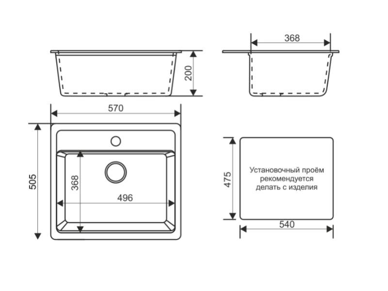 - Глубина 200 мм