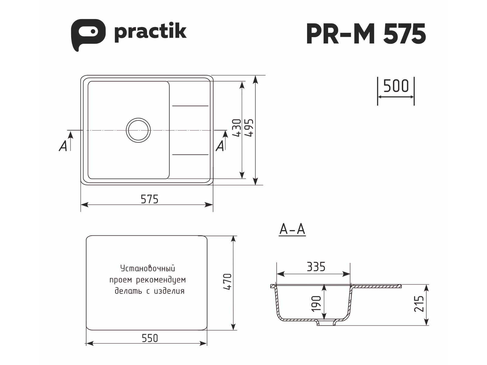 - Мойка Practik PR-M 575-004 черный оникс