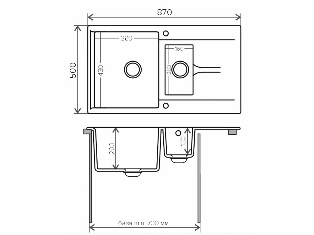 Минимальный размер тумбы под мойку, мм: 700