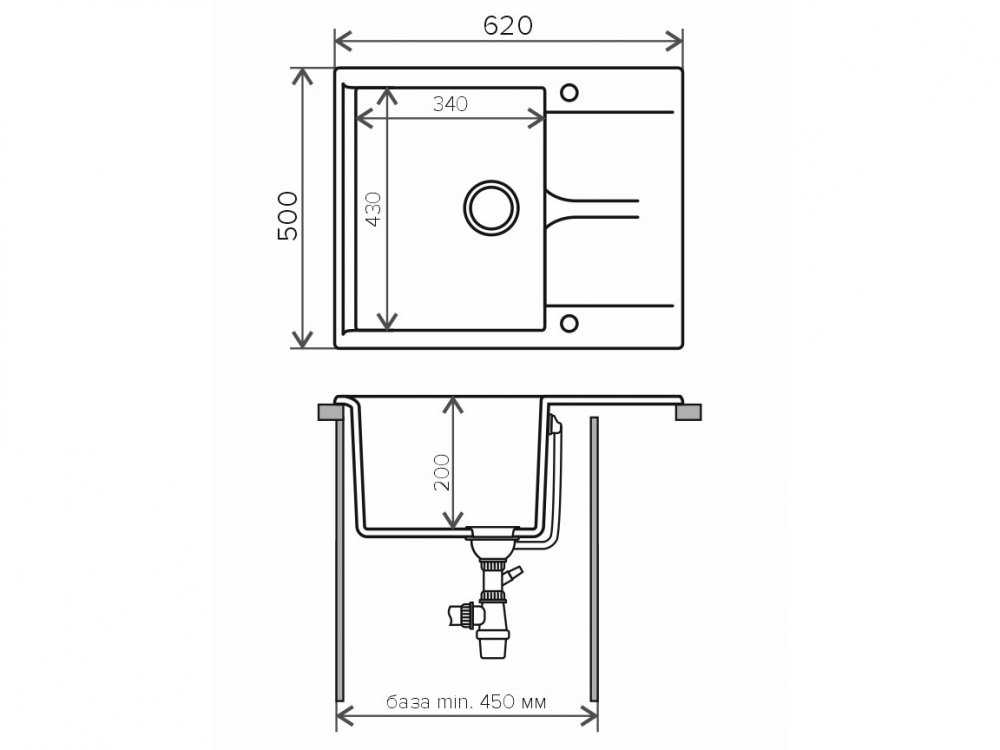 Минимальный размер тумбы под мойку, мм: 450