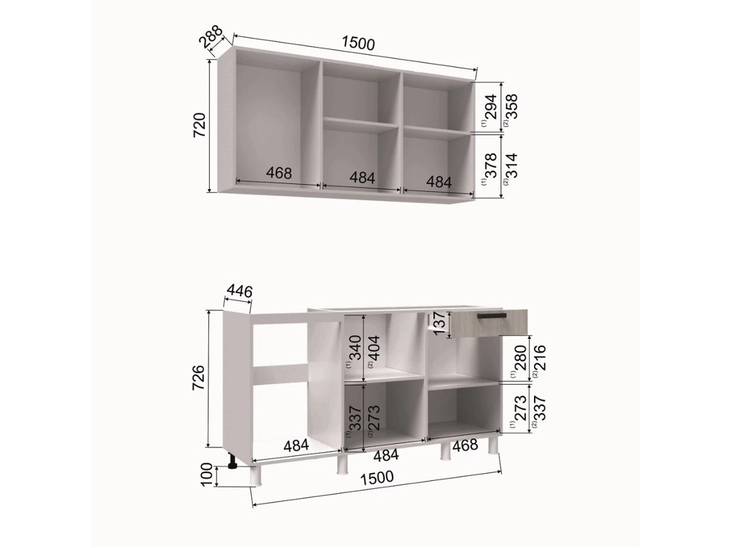 - Высота верхних шкафов, мм 720