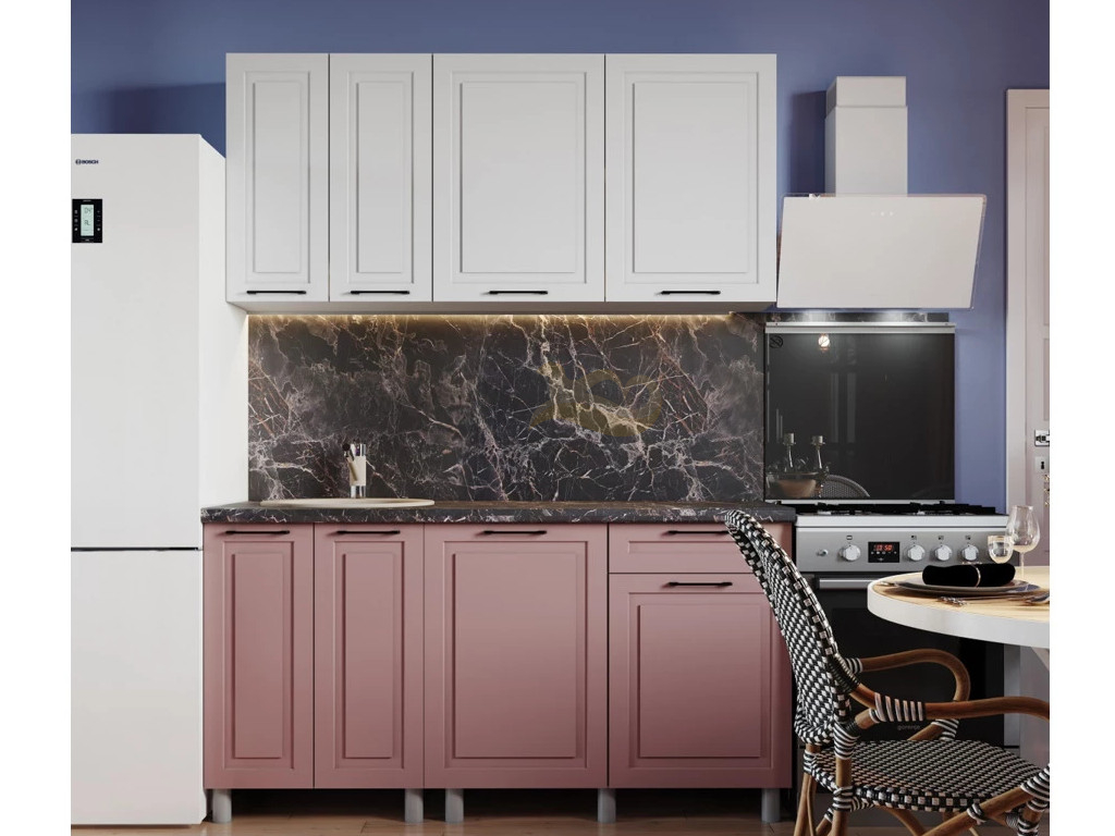 Кухня Аликанте 1600 МДФ Белый снег/пудра без столешницы