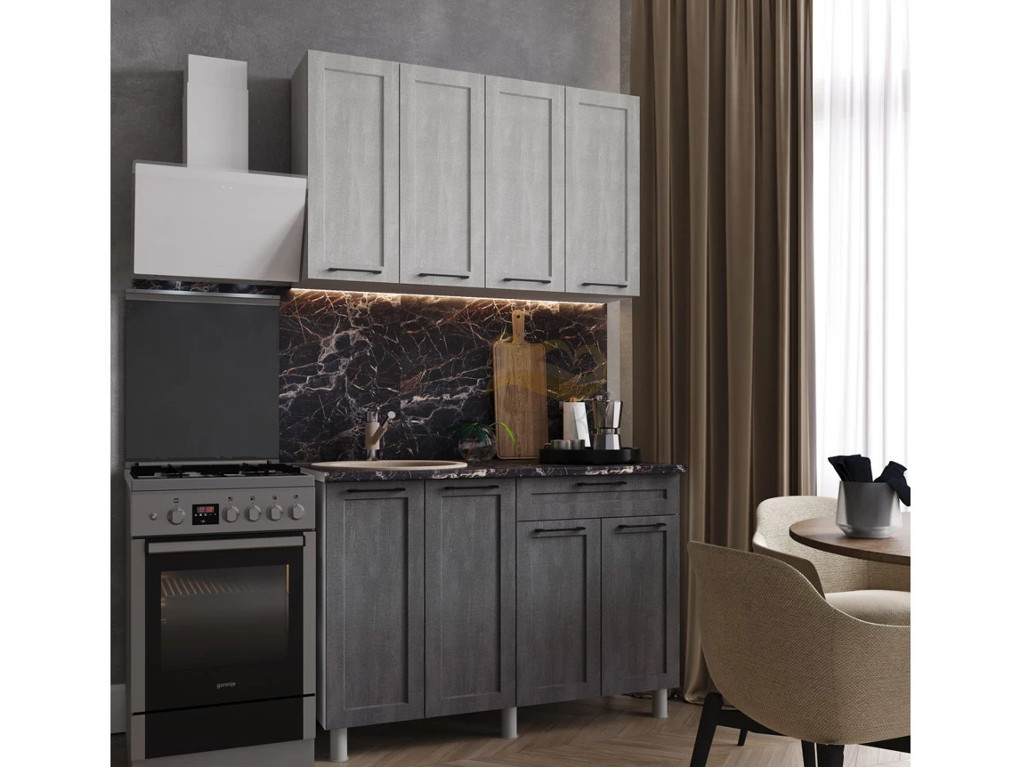 - Кухня Кальяри 1200 МДФ Холст Натуральный/Холст Грей без столешницы
