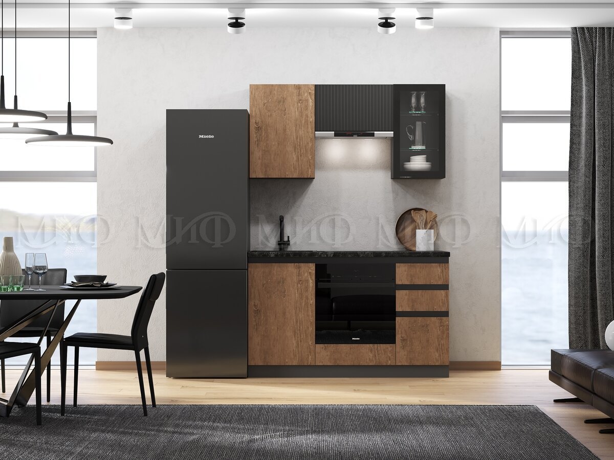 - Кухня Техно-6 1500 мм Графит/Экзотическое дерево Амазония