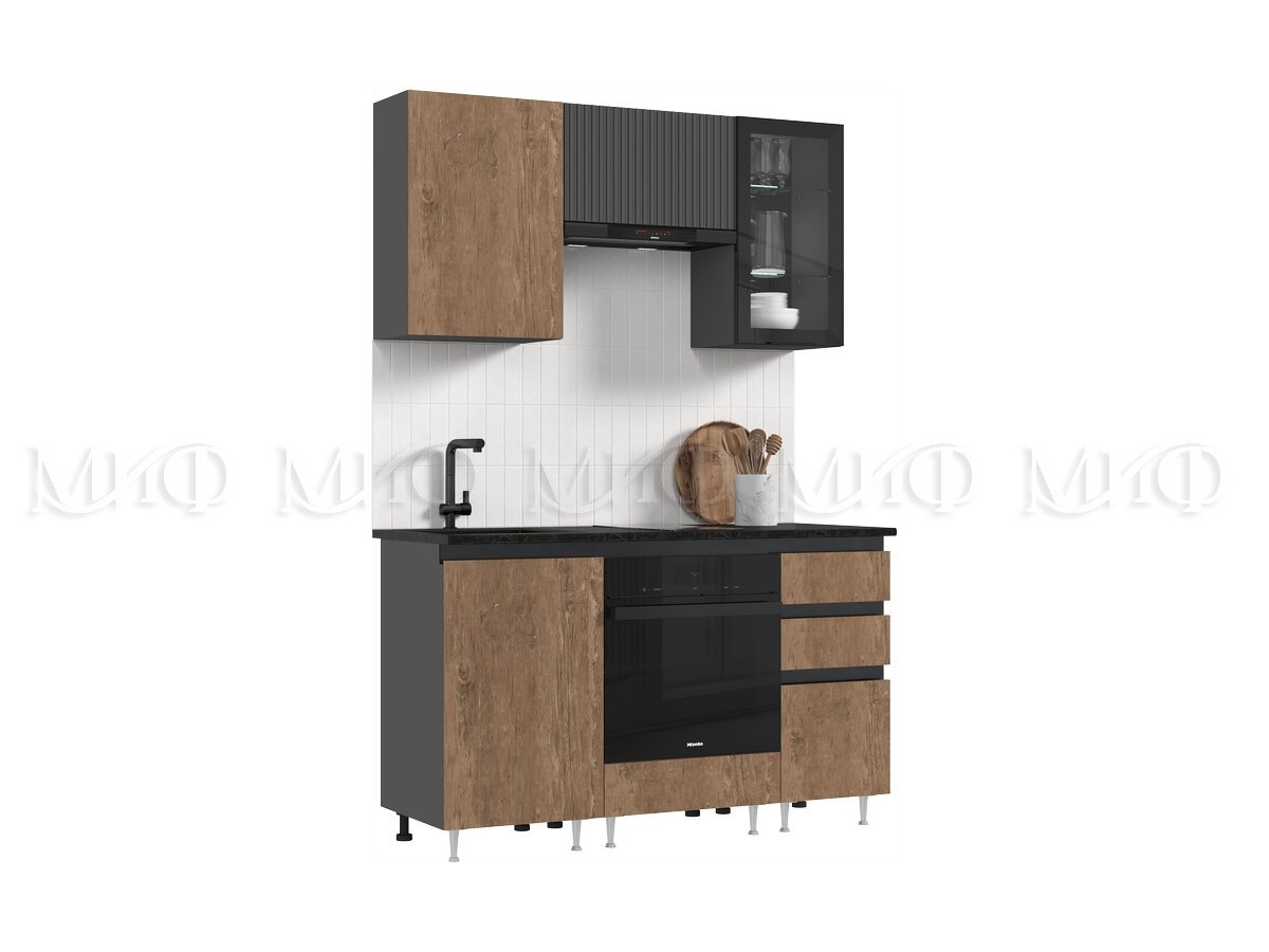 Кухня Техно-6 1500 мм Графит/Экзотическое дерево Амазония