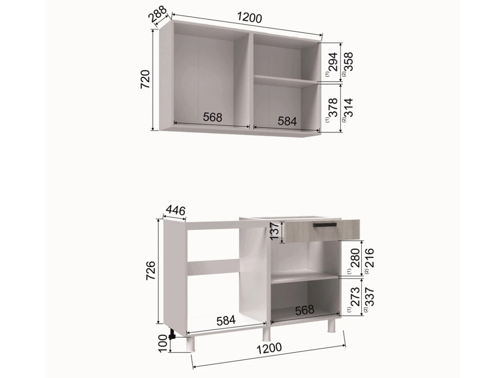 - Кухня Вандт 1200 МДФ Айвори/Лунный Кратер без столешницы