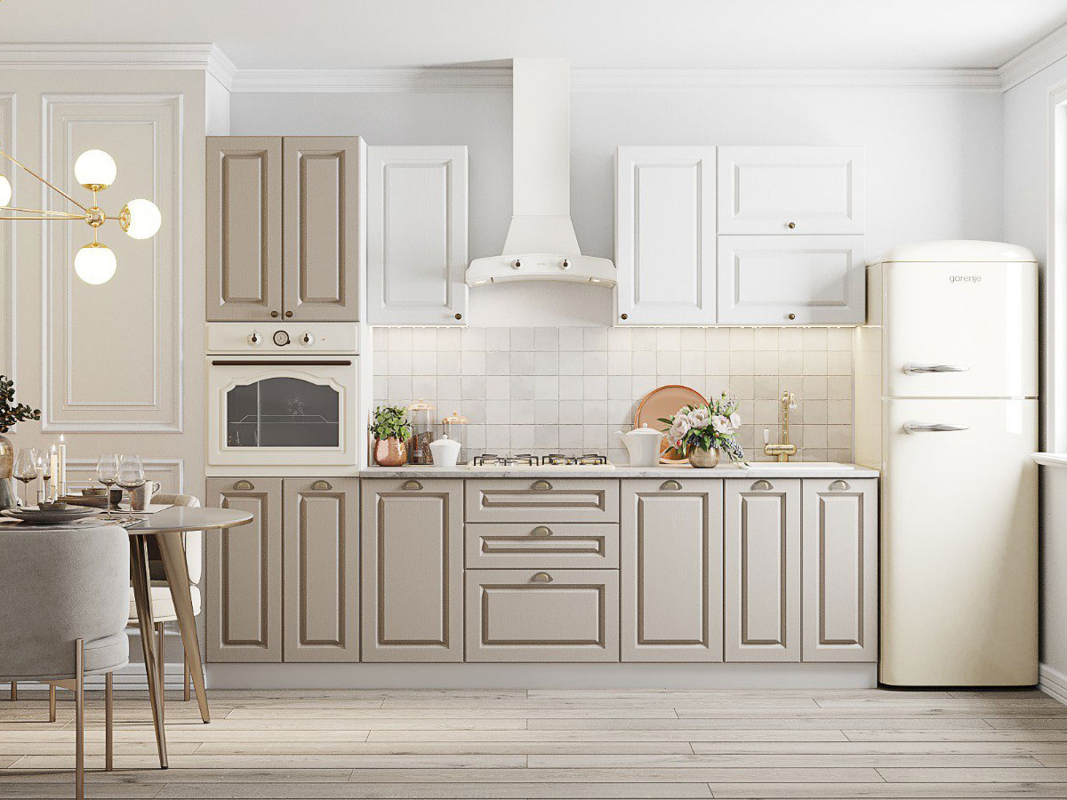 Высота: верхних шкафов 720 мм, нижних - 820 мм.