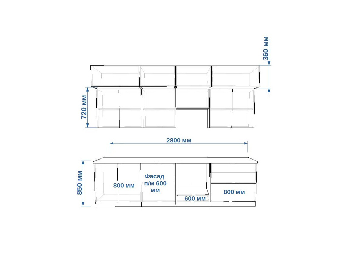 Кухонная мойка, стеновая панель, посудосушитель, планки для столешницы в комплект не входят.
