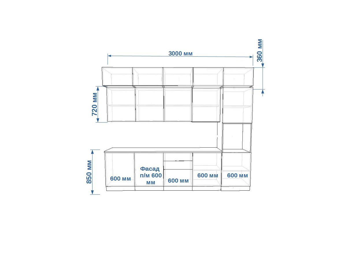 - Кухонный гарнитур арт 55 Лайн Стамбул Бетон светлый 3000 мм