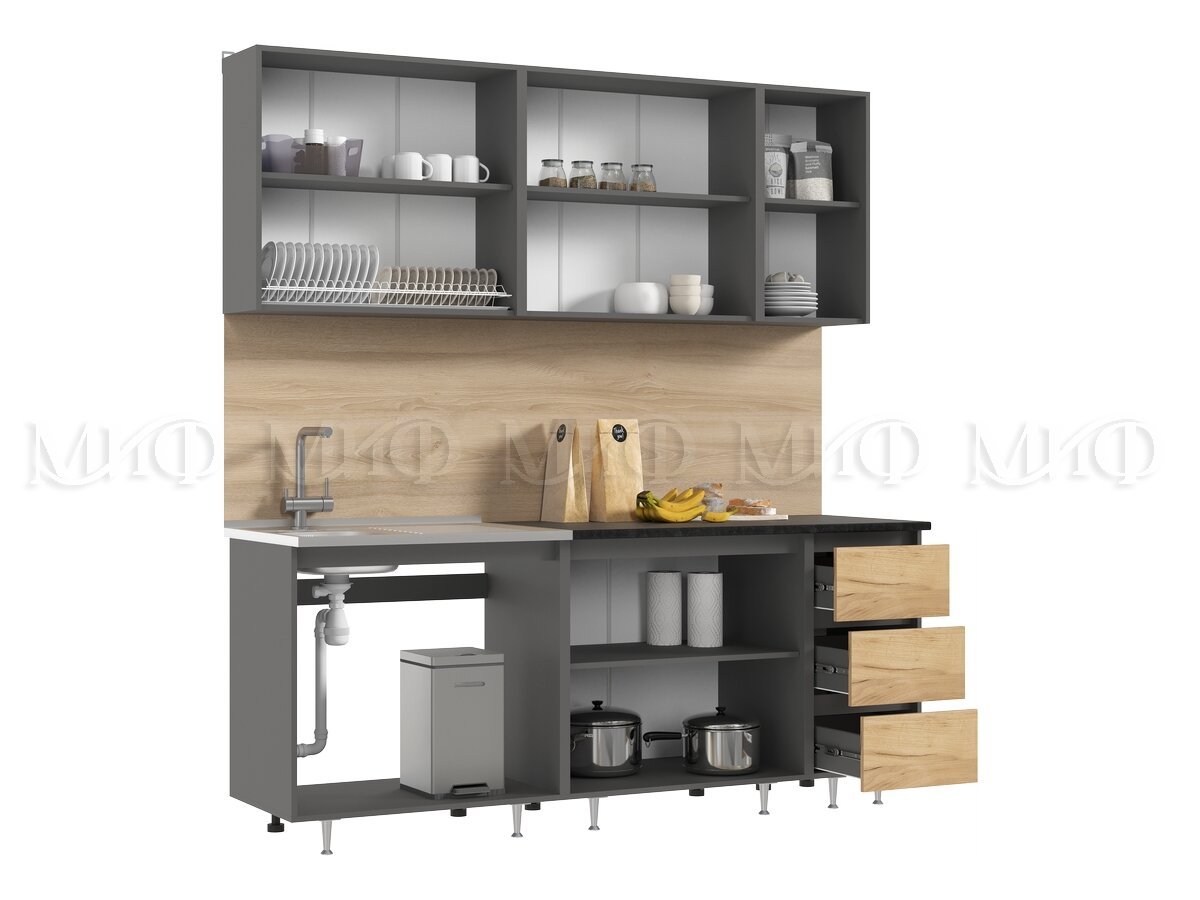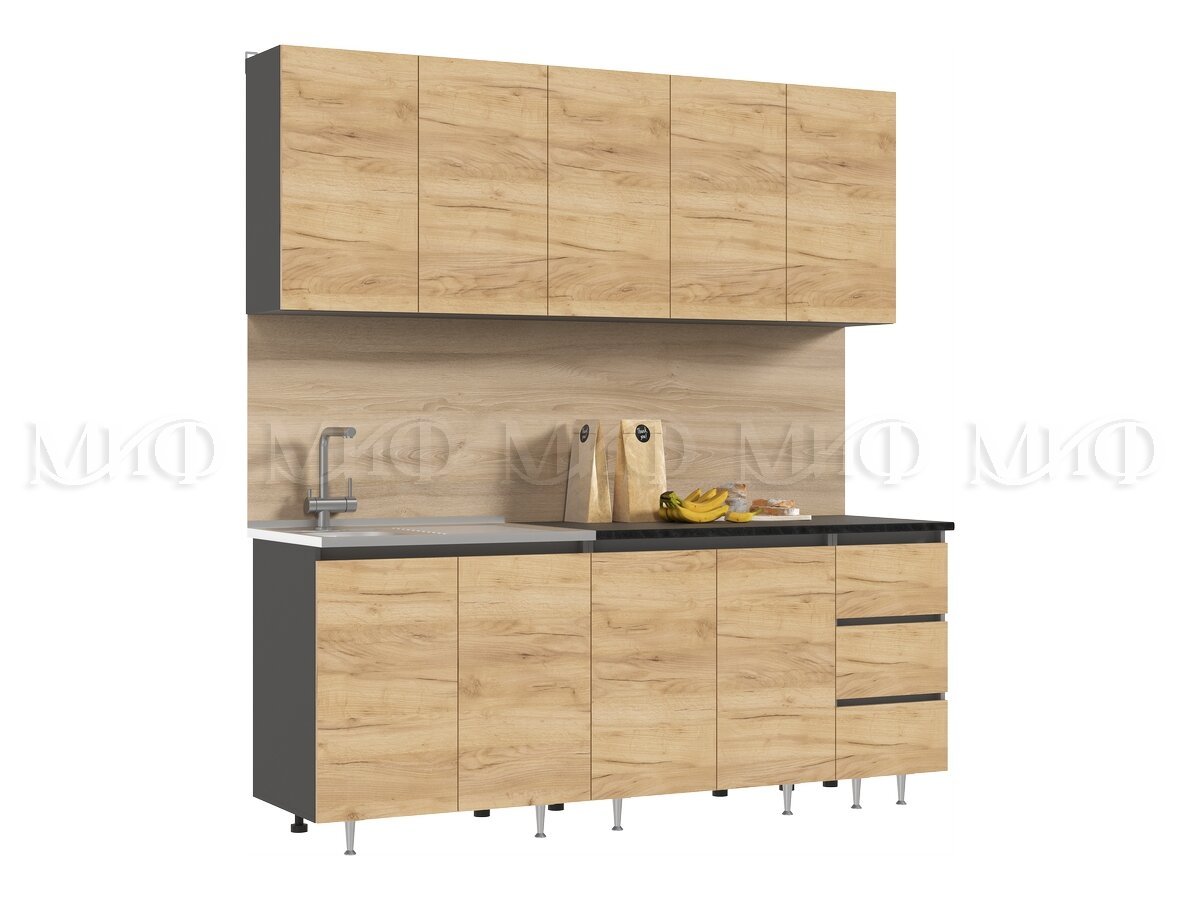 - Кухонный гарнитур Челси 2000 мм Дуб Крафт/Графит