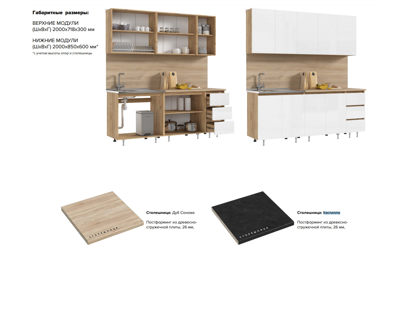 - Столешница: Дуб Сонома или Кастилло